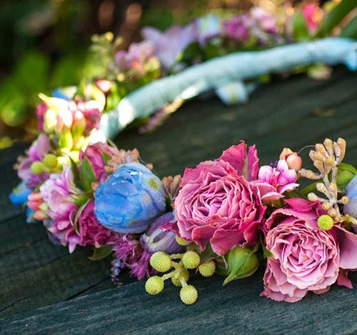 Kwiatowe ozdoby na głowę nieprzerwanie od kilku lat zyskują na popularności. Wianki to piękna propozycja na plenerowe wesele, przyjęcie w ogrodzie lub karczmie, a tak naprawdę na dowolną romantyczną scenerię. Niezależnie od tego czy panna młoda zdecyduje się na rustykalny, boho czy nowoczesny styl jesteśmy w stanie stworzyć dla niej dopasowaną kwiatową ozdobę na głowę.