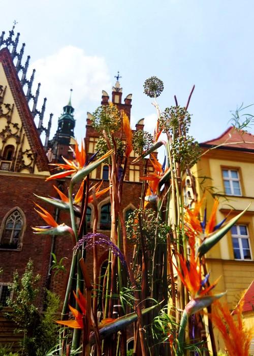Współpracując z organizatorami Jarmarku Świętojańskiego po raz kolejny miałam możliwość przygotowywać wystawę, przez cały poprzedni tydzień, tuż pod pręgierzem, można więc było podziwiać obiekty florystyczne, które podjęli się wykonać: Maciej Krzus, Marek Kucharski i ja – Agnieszka Mitko–Kominek. Nie jest to łatwe zadanie. Konstrukcje muszą być bardzo stabilne, nie da się ich mocować do podłoża, a rośliny odpowiednie na 30 stopni ciepła oraz znoszące wiatr i deszcz. A jednak udało się i nasze prace, tym którzy byli zainteresowani, bardzo się podobały.