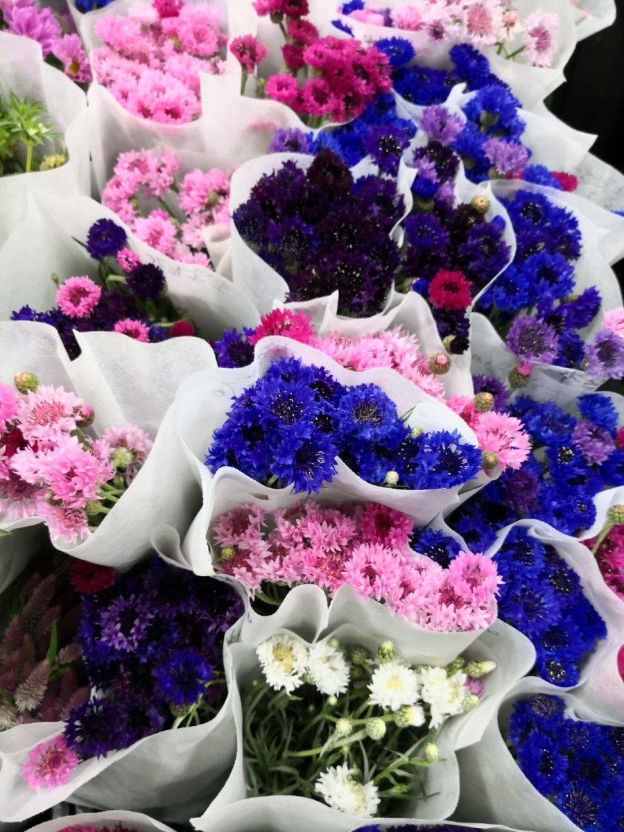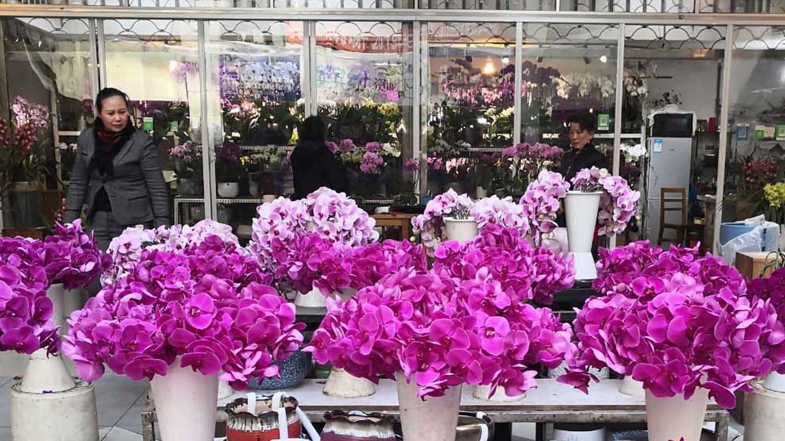 Po sekcji dla zwierząt przemieszczamy się do innej części rynku, w której mieści się sprzedaż hurtowa kwiatów. Kwiaty stoją w dużych wiadrach z wodą, a róże pakowane są w papier falisty. Wrażenie robią storczyki, a zwłaszcza ilości w jakich możemy je tu oglądać.
