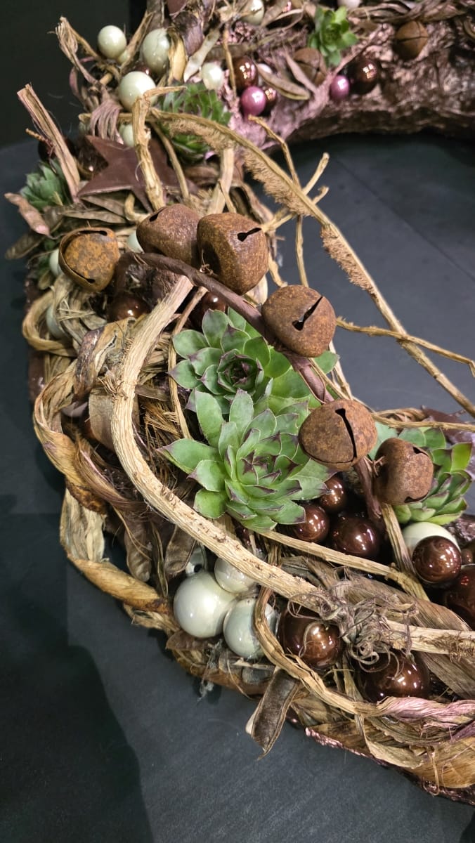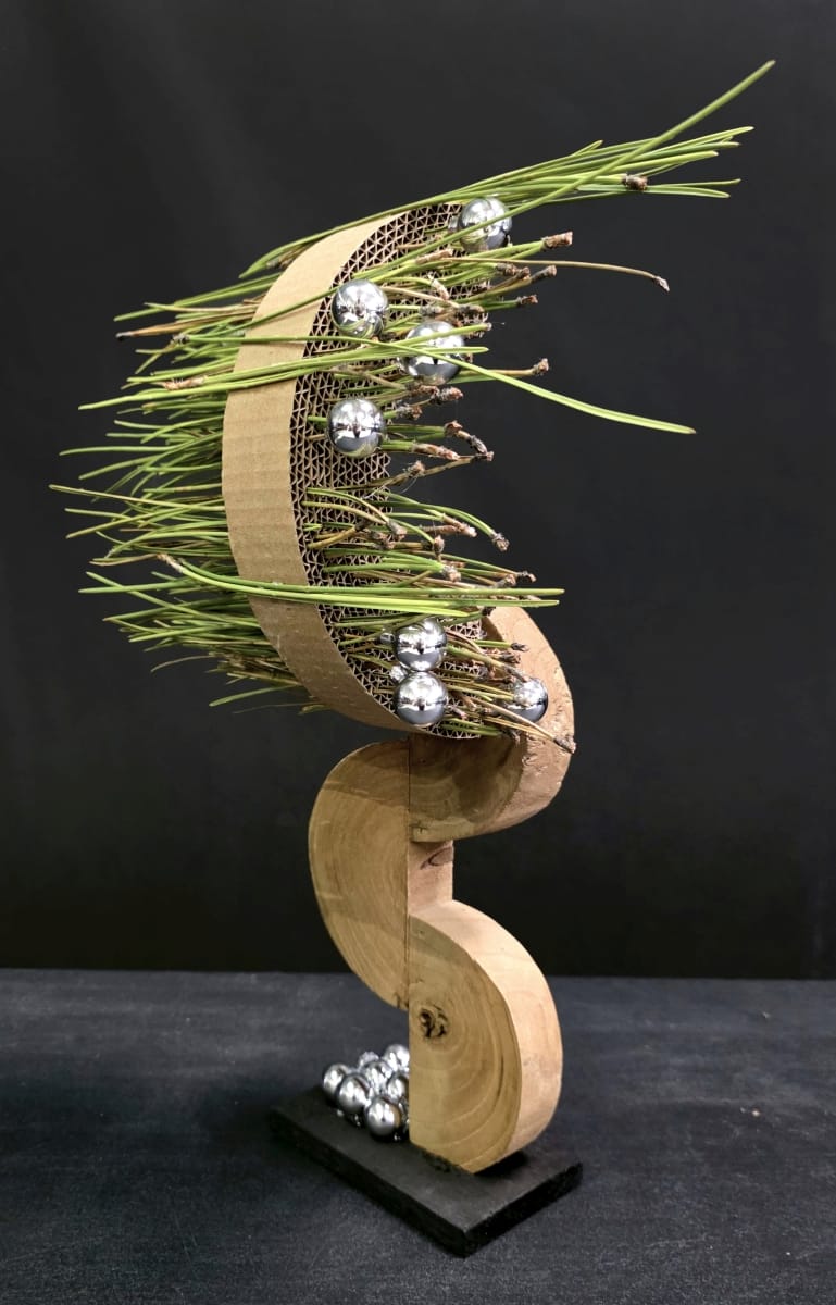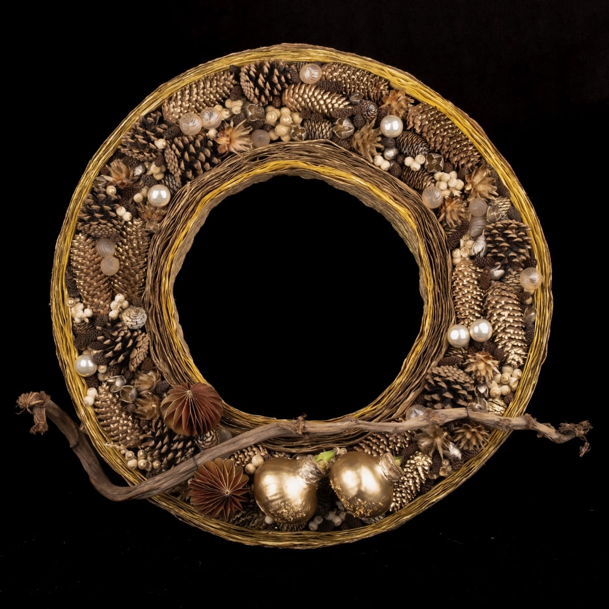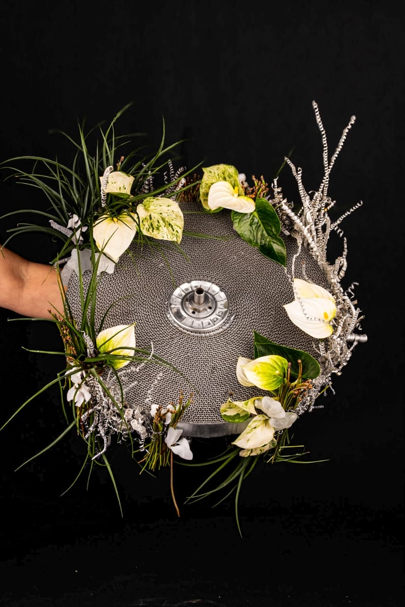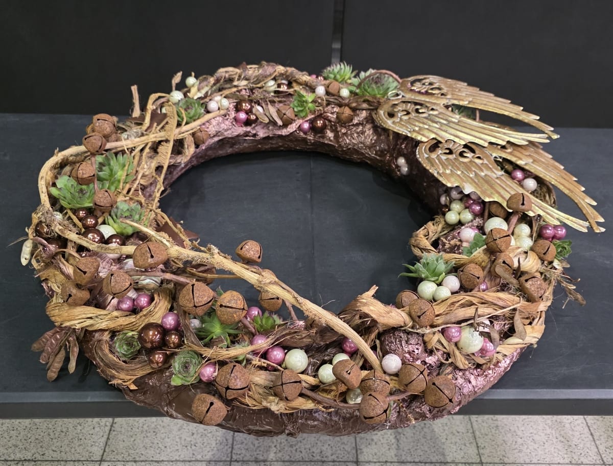 Najbardziej zaskakująca okazała się pierwsza kolekcja: biała, chłodna, minimalistyczna. Mocno nowoczesna, świadomie nie „dla każdego klienta”. Użyto w niej nietypowych materiałów, m.in. aluminiowych ścinków z obróbki metalu czy… tekturowego drapaka dla kota. To połączenia, które w tradycyjnej florystyce pojawiają się rzadko. Kolejne kolekcje utrzymały się już w bardziej klasycznym świątecznym kanonie: czerwienie, srebro, złoto i naturalne odcienie brązu.