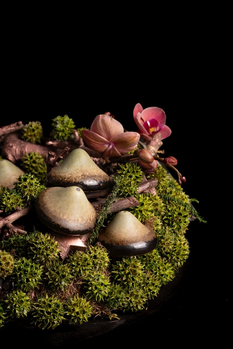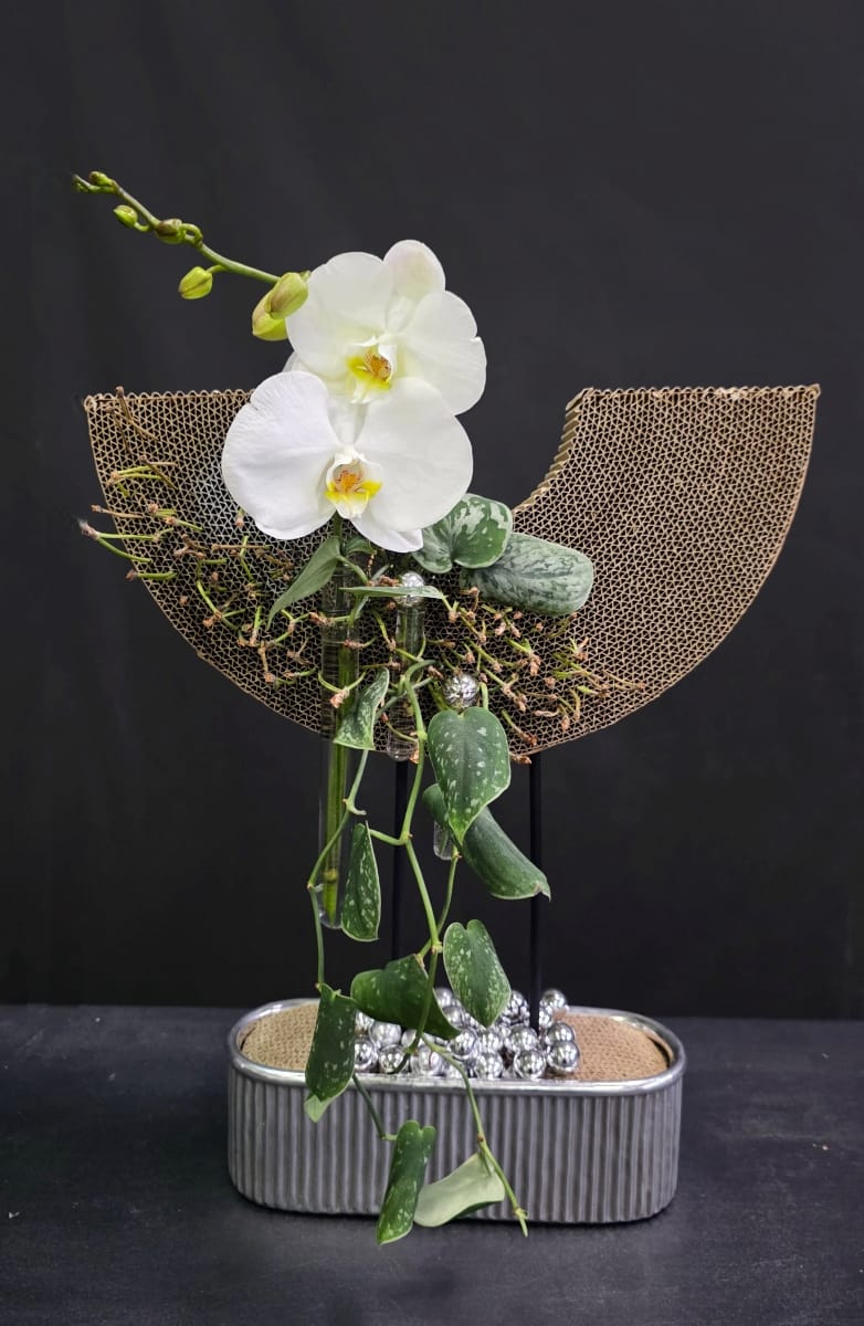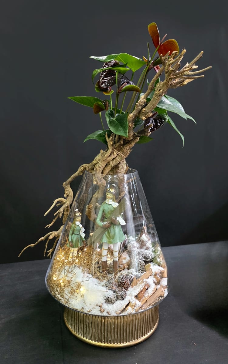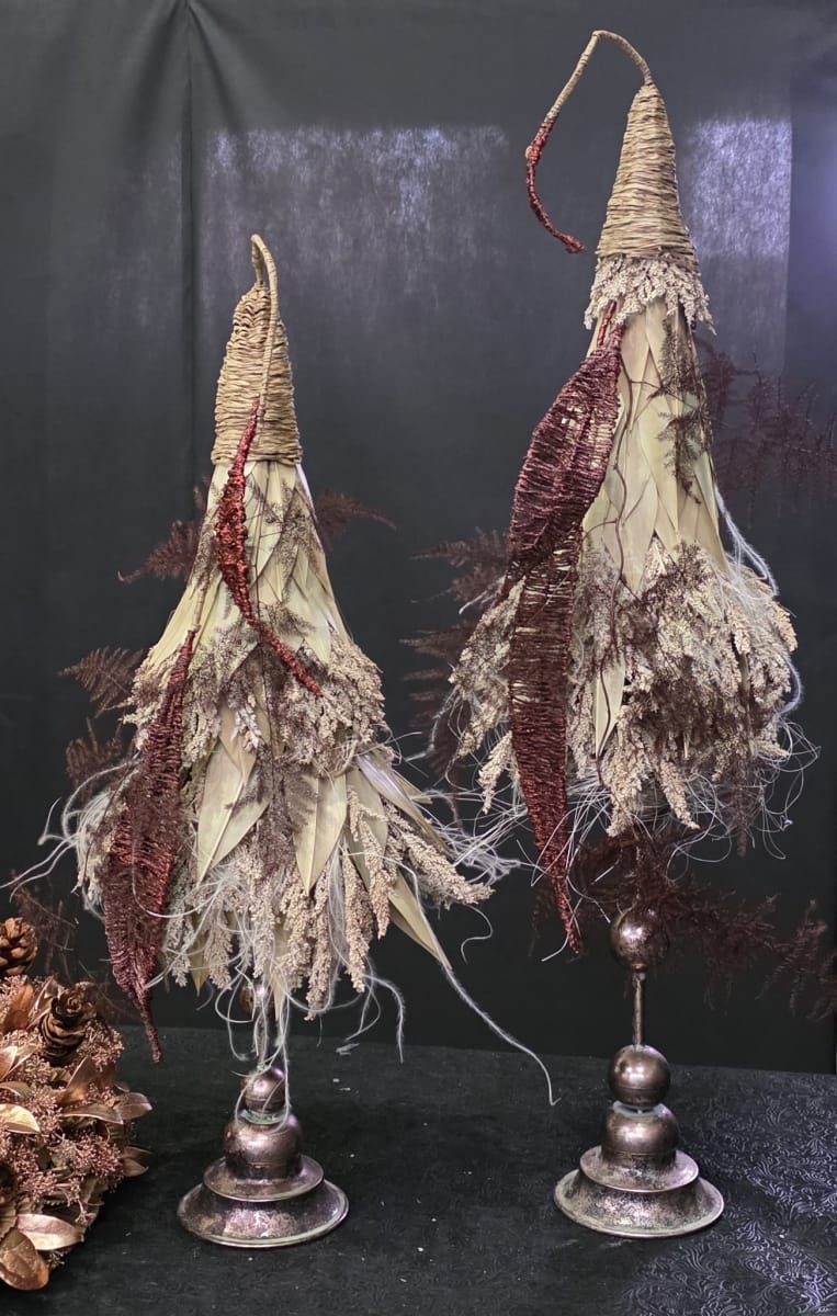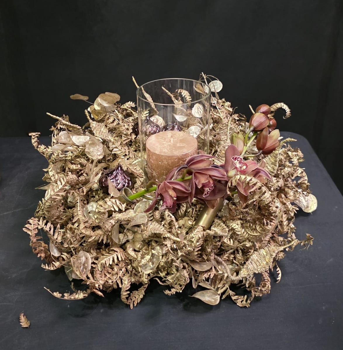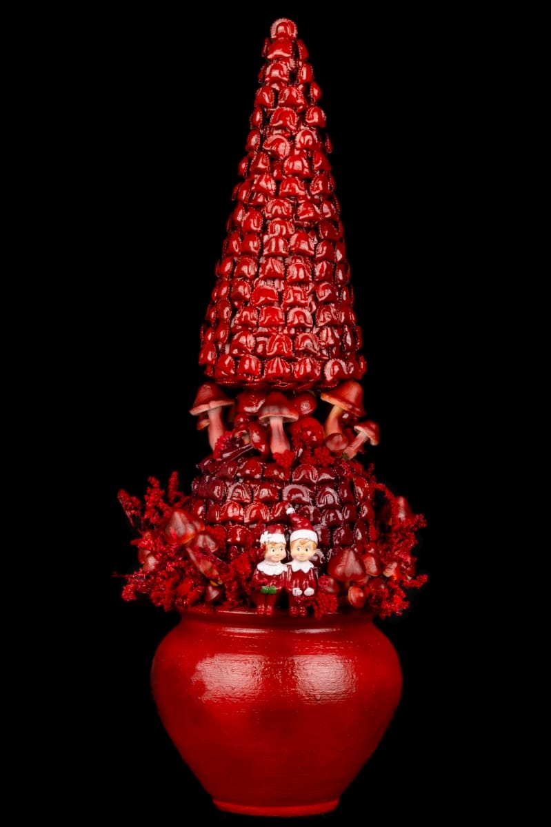 Najbardziej zaskakująca okazała się pierwsza kolekcja: biała, chłodna, minimalistyczna. Mocno nowoczesna, świadomie nie „dla każdego klienta”. Użyto w niej nietypowych materiałów, m.in. aluminiowych ścinków z obróbki metalu czy… tekturowego drapaka dla kota. To połączenia, które w tradycyjnej florystyce pojawiają się rzadko. Kolejne kolekcje utrzymały się już w bardziej klasycznym świątecznym kanonie: czerwienie, srebro, złoto i naturalne odcienie brązu.