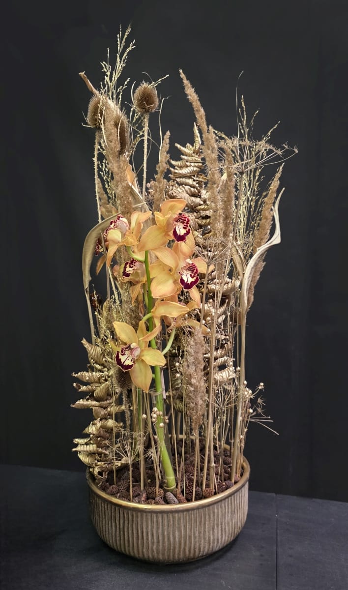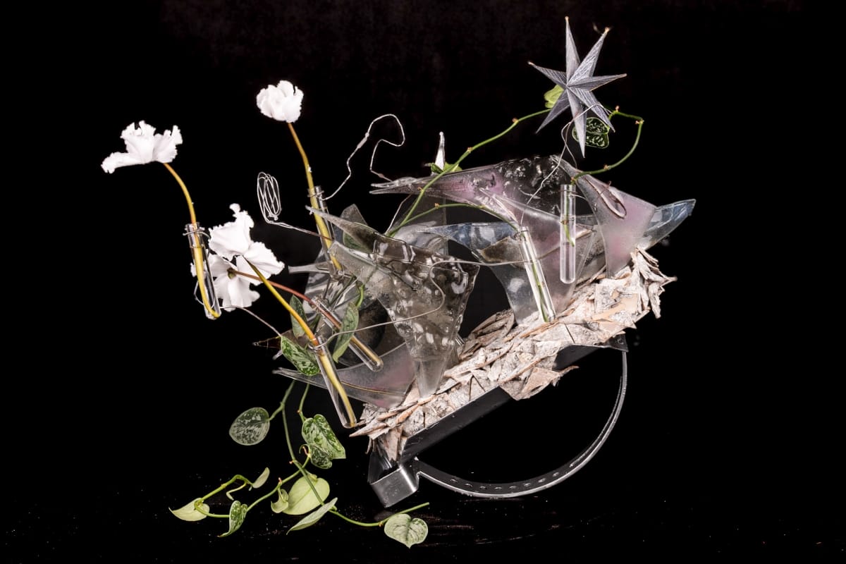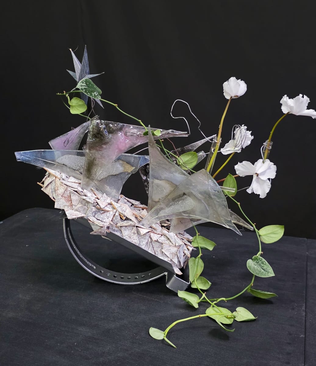 Zaskoczenia pojawiały się często – głównie tam, gdzie pracowano z materiałami codziennymi, które w rękach kreatywnej florystki zmieniały funkcję i proporcje. Ten „nieoczywisty recykling” był jednym z ciekawszych wątków wieczoru.