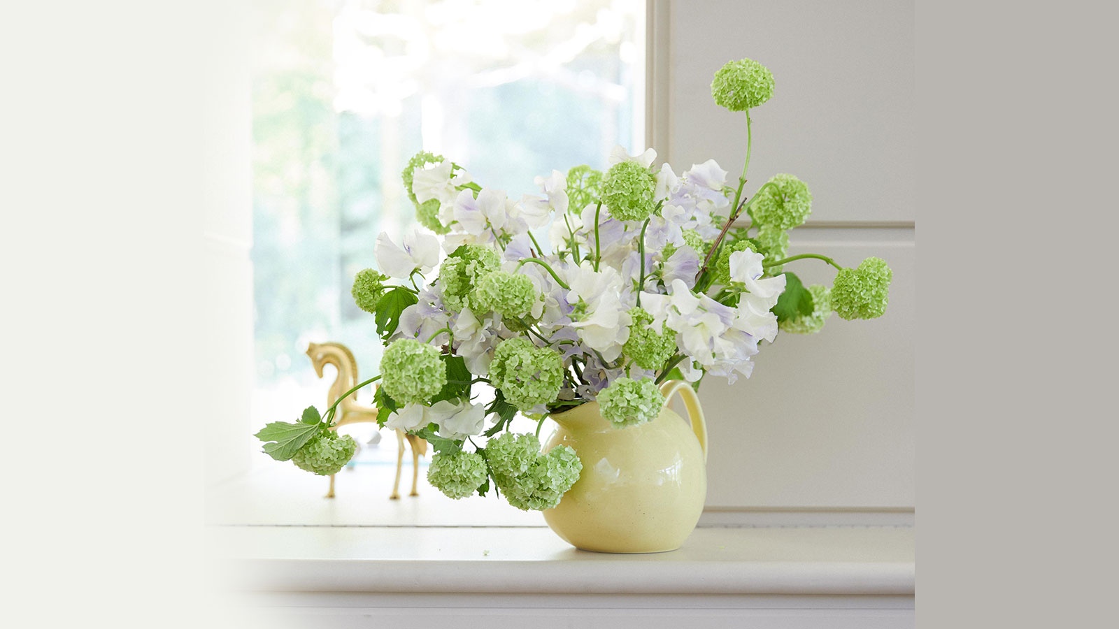 Groszek w kompozycji z kaliną. Fot. funnyhowflowersdothat.co.uk